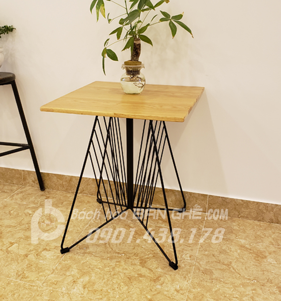 Bàn Cafe Gỗ Sắt BSK036 bàn cafe gỗ với chân sắt kiềng ba chân được thiết kế cách điệu tập trung ở phần chân tạo cho khung chân sắt nhìn lạ và độc đáo