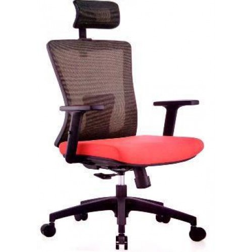 Ghế Văn Phòng GNTX126A. Ghế nhân viên lưng cao tựa nhựa lưới có gối đầu ngả lưng, mút đúc ốp nhựa, mâm 2 cần, chân nhôm, tay PU nâng hạ
